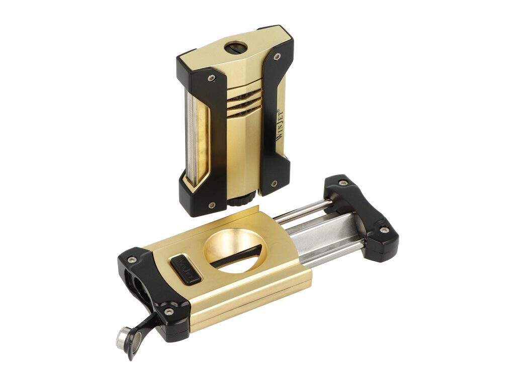 Doutníková sada Winjet, zlatá, zapalovač+ořezávač V-Cut