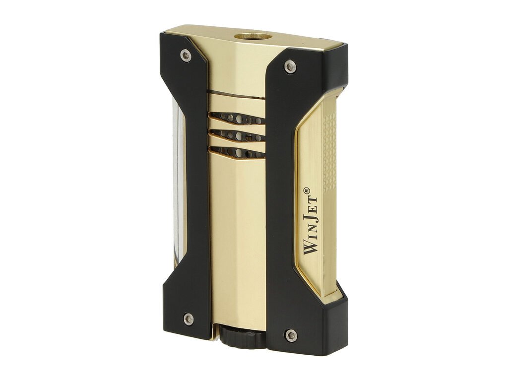 Praktická doutníková sada Winjet zapalovač a ořezávač doutníků s vyštípávačem. Dárková sada pro kuřáky doutníků ve zlato černé lesklé kombinaci. Doutníkový set obsahuje kovový doutníkový zapalovač s jednou tryskou a jednobřitý doutníkový ořezávač s V-Cut ořezem do tvaru V s integrovaným vyštípávačem, který najdeme na spodní části. Oříznutí doutníků do tvaru V se opět stává populárním, jelikož takový ořez může zlepšit nejen tah doutníku, ale především změnit - zlepšit chuť při jeho kouření. Hloubka V-Cutu může být až 6 mm. Plnicí ventil plynu a nastavení intenzity plamene je umístěné na spodní straně zapalovače. Na levé boční straně najdeme okénko, kde můžeme sledovat hladiny plynu v zapalovači. Ostrý kovový břit ořezávače zajistí rychlý a čistý ořez vašeho doutníku. Sada je dodávaná v dárkové krabičce.