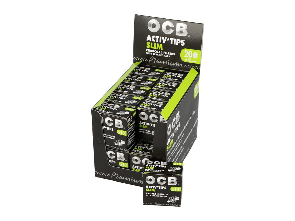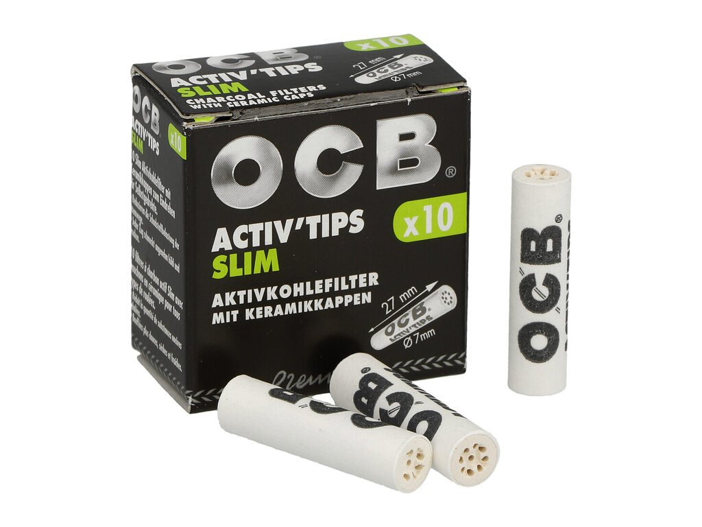 Cigaretové filtry OCB Activ Tips Slim s aktivním uhlím a keramickým oboustranným zakončením. Uhlíkové filtry snižují množství přijímaného dehtu, neovlivňují chuť a dopřejí Vám suché a chladné kouření. Cena uvedena za 1 balení (10 ks filtrů).