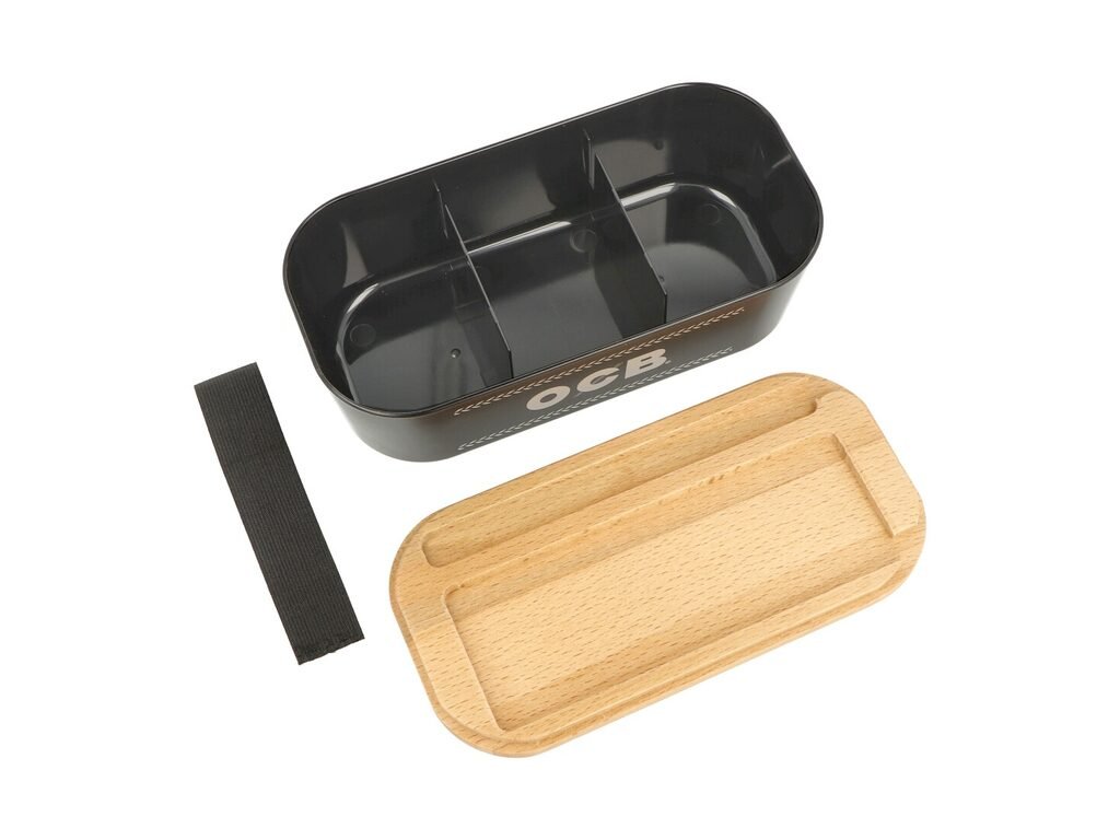 Plastový box na balení cigaret s dřevěným víkem. Uvnitř balicího boxu OCB najdeme tři oddělené prostory, kde můžeme uschovat vše potřebné pro balení cigaret jako jsou cigaretové papírky, filtry a tabák. Vnitřní strana dřevěného víka nám poslouží jako balicí podložka s prostorem pro jejich výrobu. Praktický storage box vše potřebné pro výrobu vlastních cigaret uschová a Vy máte vše na jednom místě bez nepořádku. Víko se na boxu upevňuje přetažením gumovým páskem. Box s balicí podložkou je dodáván v originální krabici.