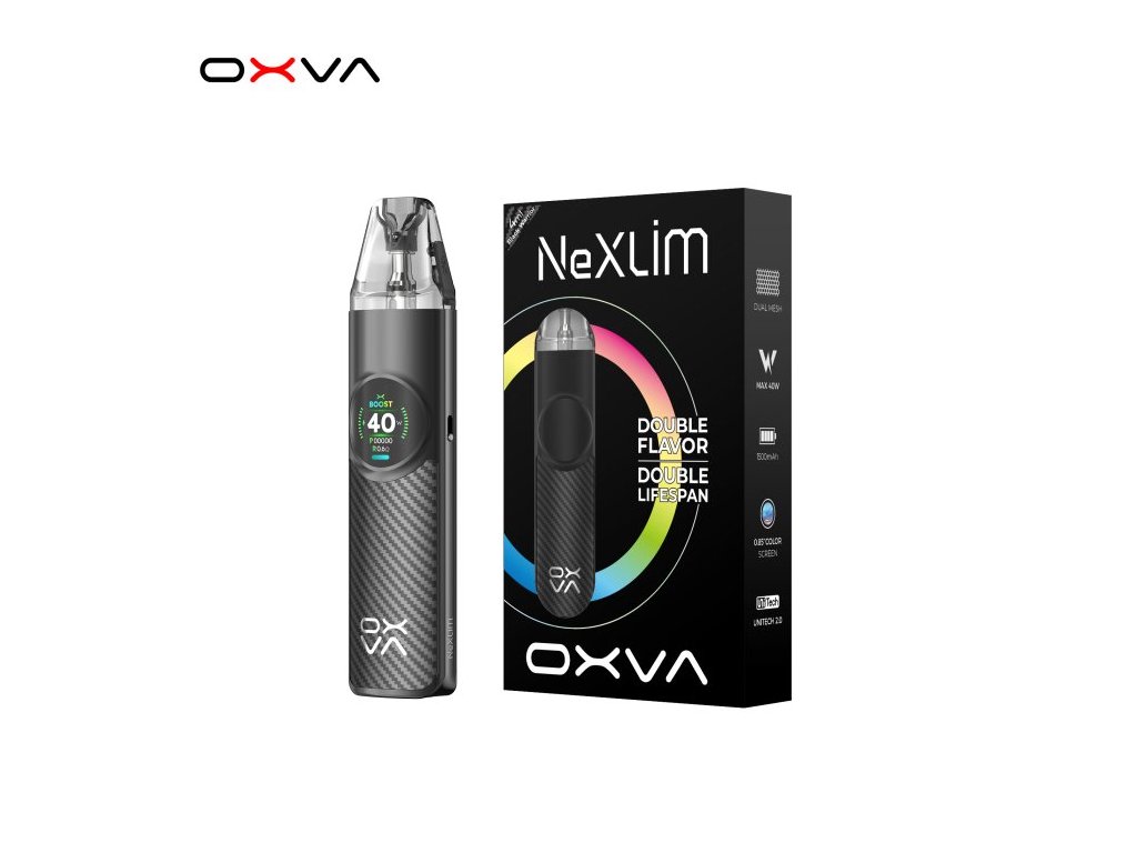 OXVA NeXLIM představuje novou generaci otevřených POD systémů, které využívají pokročilou technologii Dual Mesh. Ta zajišťuje až o 200 % intenzivnější chuť a dvojnásobnou životnost ve srovnání s tradičními single mesh systémy. Zařízení nabízí režimy Boost a Eco, přičemž režim Boost poskytuje bohatší chuť díky větší topné ploše, zatímco režim Eco střídavě využívá dvojité spirálky pro maximální efektivitu a delší životnost.