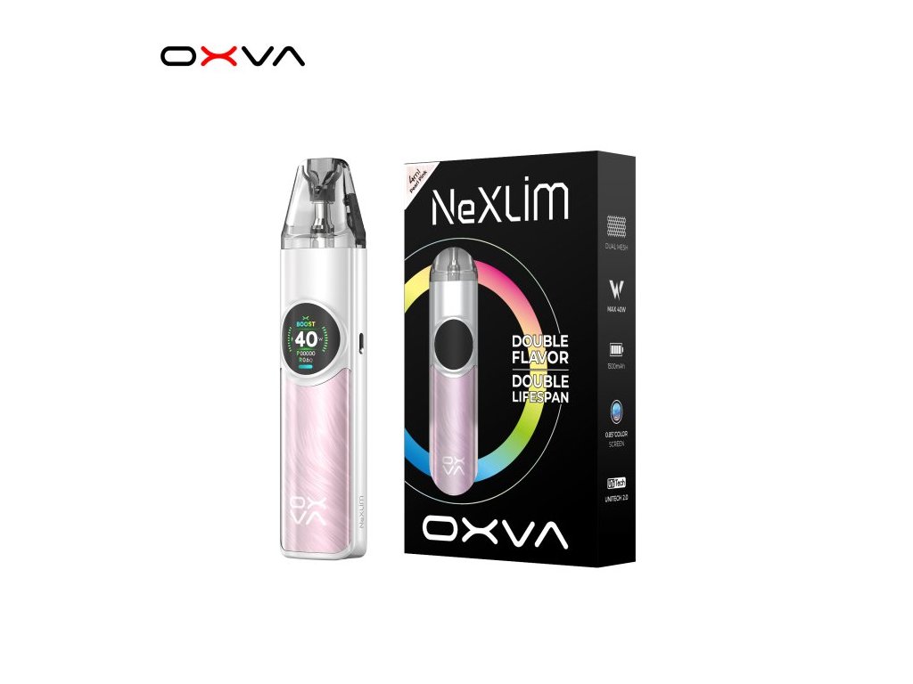 OXVA NeXLIM představuje novou generaci otevřených POD systémů, které využívají pokročilou technologii Dual Mesh. Ta zajišťuje až o 200 % intenzivnější chuť a dvojnásobnou životnost ve srovnání s tradičními single mesh systémy. Zařízení nabízí režimy Boost a Eco, přičemž režim Boost poskytuje bohatší chuť díky větší topné ploše, zatímco režim Eco střídavě využívá dvojité spirálky pro maximální efektivitu a delší životnost.