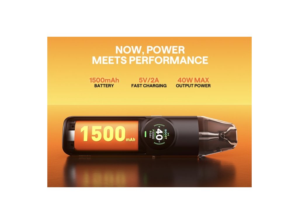 Součástí zařízení je velkokapacitní 4ml cartridge, která umožňuje více než 15 naplnění a disponuje 5vrstvou ochranou proti úniku, což zaručuje spolehlivý a čistý provoz. Přehledný 0,85" barevný displej poskytuje snadný přístup ke všem nastavením zařízení a zobrazuje důležité informace. Integrovaná 1500mAh baterie s rychlým nabíjením 5V/2A zajišťuje dlouhou výdrž a rychlé doplnění energie. Kromě toho zařízení umožňuje nastavení výkonu v rozmezí 5–40 W, díky čemuž si každý uživatel může přizpůsobit zážitek z vapování podle svých preferencí.