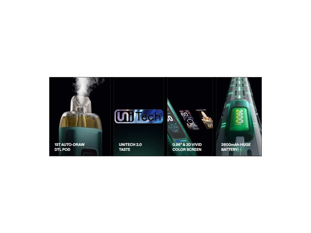 Není určeno pro náplně obsahující nikotin! Nejpopulárnější výrobce elektronických cigaret OXVA představuje VPRIME Kit, první systém DL s automatickým spínáním potahu a ultra realistickým celobarevným displejem. V dokonale zpracovaném těle baterie se nachází vestavěný monočlánek o kapacitě 2600mAh s výstupním výkonem až 60W. Nové stejnojmenné cartridge o objemu 5ml disponují technologií Unitech 2.0, které jsou navrženy pro dokonalou chuť při každém potahu a možnost vapování všemi oblíbenými styly - DL, RDL a MTL.